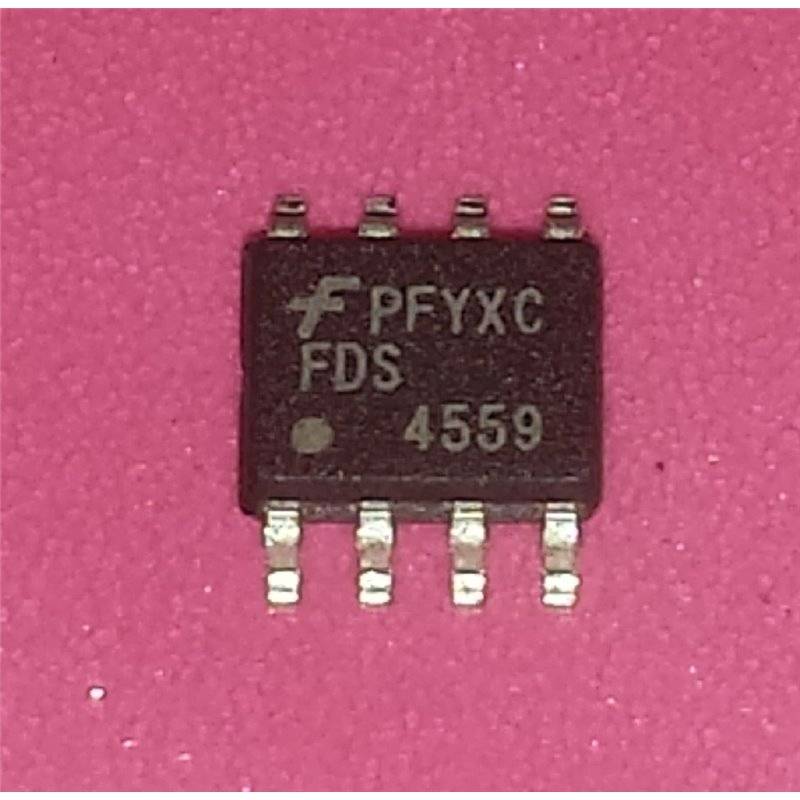 FDS4559 شامل دو عدد ماسفت مکمل از نوع P و N با تحمل ولتاژ 60 ولت و حداکثر جریان 4.5 آمپر و توان 1 وات می باشد.