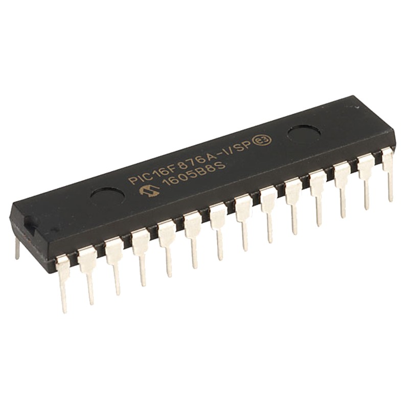 آی سی PIC16F876A-I/SP یک میکرو کنترلرPIC با 14kB حافظه Flash و 256B حافظه EEProm دارای 5 عدد مبدل آنالوگ به دیجیتال 10 بیتی و تایمر 8 و 16 بیتی می باشد.