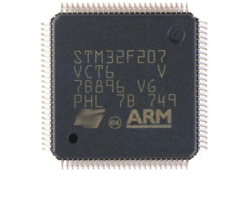 Manufacturer: STMicroelectronics RoHS: RoHS Compliant Details Mounting Style: SMD/SMT Package/Case: LQFP-100 Core: ARM Cortex M3 Data Bus Width: 32 bit Maximum Clock Frequency: 120 MHz Program Memory Size: 256 kB Data RAM Size: 96 kB ADC Resolution: 12 bit Operating Supply Voltage: 1.8 V to 3.6 V Maximum Operating Temperature: + 85 C Processor Series: ARM Cortex M Packaging: Tray Brand: STMicroelectronics Data RAM Type: SRAM Data ROM Size: 512 B Interface Type: 2xCAN, 2xUART, 3xI2C, 3xSPI, 4xUSART, SDIO Minimum Operating Temperature: – 40 C Number of I/Os: 16 I/O Number of Timers/Counters: 10 Timer Program Memory Type: Flash Series: STM32F2 Factory Pack Quantity: 90 Tradename: STM32 Unit Weight: 1,319 gآی سی STM32F207VCT6 از خانواده ARM CORTEX M3 و تولیدی شرکت ST می باشد.